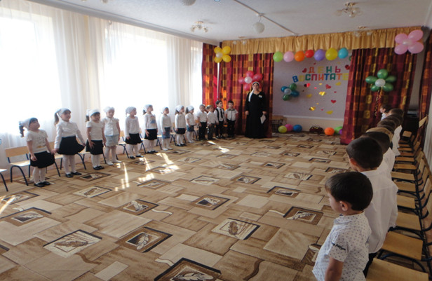 29.09.2015Воспитанники детского сада «Мечта» с распростертыми объятиями встретили праздник, посвященный Дню воспитателя. В честь этого праздника в детском саду были проведены занятия и мероприятия, посвященные воспитателю.
